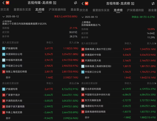 龙虎榜显示,相关游资与机构近期参与了吉视传媒股票的炒作。